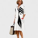 L'abito Clara è sinonimo di eleganza audace e disinvolta. Progettato per attirare l'attenzione con raffinata sicurezza, combina un taglio sartoriale senza tempo con un tocco artistico distintivo. Che tu stia partecipando all'inaugurazione di una galleria, a una cena speciale o a un pranzo elegante, Clara lascerà un'impressione indimenticabile, senza dire una parola. Con un motivo illustrativo moderno e una silhouette fluida ad A, questo abito stile camicia fonde arte e moda. Il colletto rigoroso e la palette monocromatica sono radicati nella raffinatezza, mentre il design unico del viso aggiunge il giusto tocco di audacia. Per le donne che trasmettono sicurezza attraverso il minimalismo con un tocco di originalità.