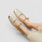 Scopri il fascino intramontabile delle Mary Jane in pelle Mestelle, realizzate a mano in pelle di alta qualità, dove lo stile vintage incontra il fascino moderno. Caratterizzate da un cinturino intrecciato impreziosito da perle, punta metallizzata e tacco largo delicatamente luccicante, queste scarpe sono progettate per aggiungere un tocco di splendore a ogni outfit. Perfette per le donne che desiderano eleganza, comfort e un tocco di glamour in più, sia per un evento speciale che per valorizzare il proprio look quotidiano.