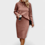 Eleganza in un set: completo a due pezzi con dolcevita e gonna