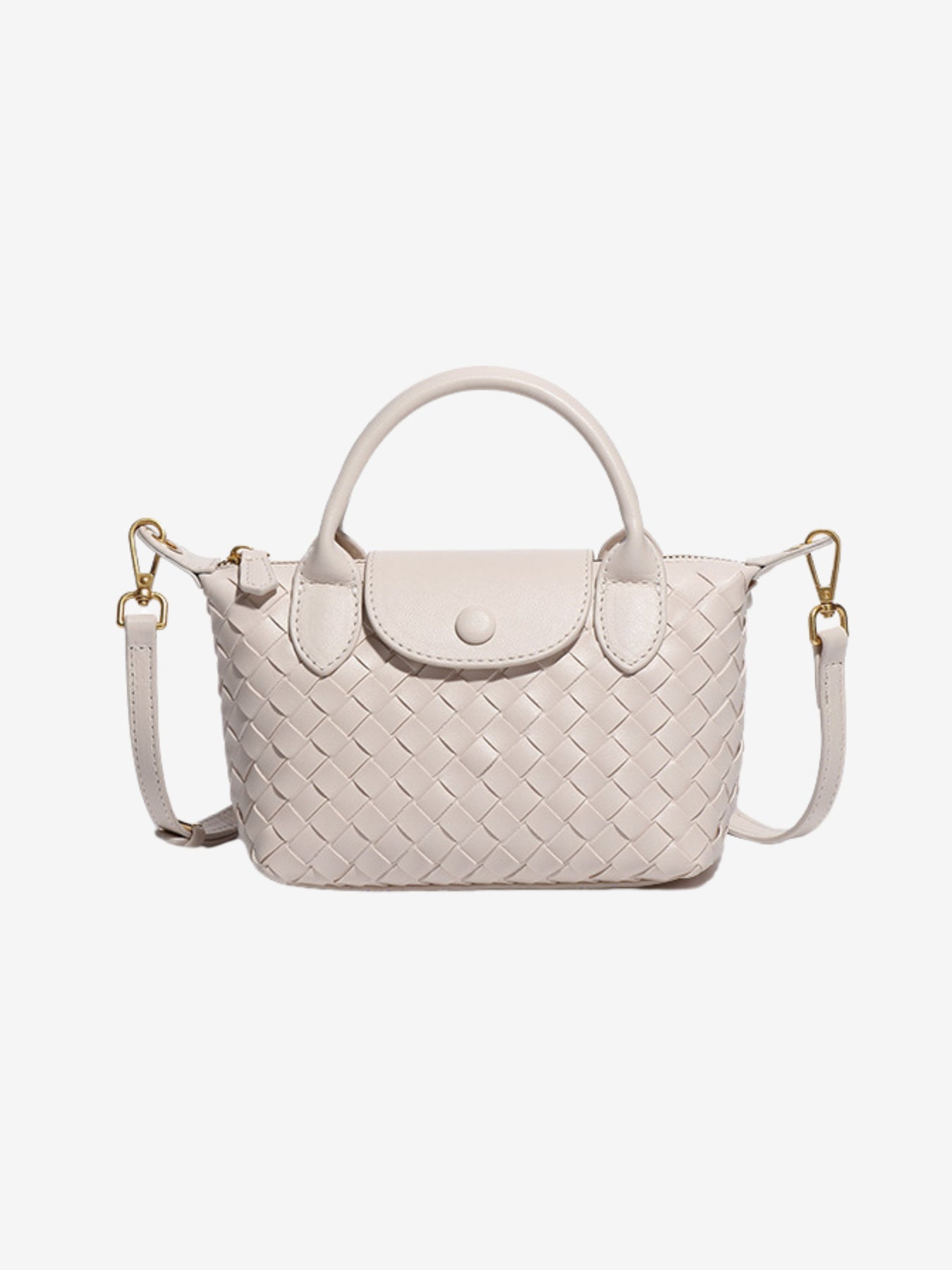 La borsa convertibile piccola intrecciata Elise offre un fascino senza sforzo in una silhouette mini versatile. Realizzata in pelle vegana di alta qualità, la sua forma strutturata e la texture intrecciata dettagliata offrono un aggiornamento chic al tuo look quotidiano. Piccola ma potente, tiene i tuoi essenziali con facilità e include una tracolla rimovibile per passare senza problemi dallo stile a tracolla a quello a mano.